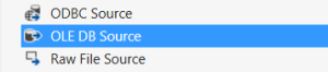 - Drag the OLE DB Source onto the Data Flow stage. It will have a red X on it.