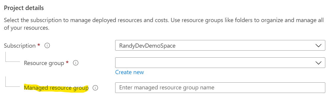 As you can see from this image for creating a synapse workspace, you are provided the opportunity to provide the name for the managed resource group. It’s not required to enter that managed resource group name, but it’s a great idea!